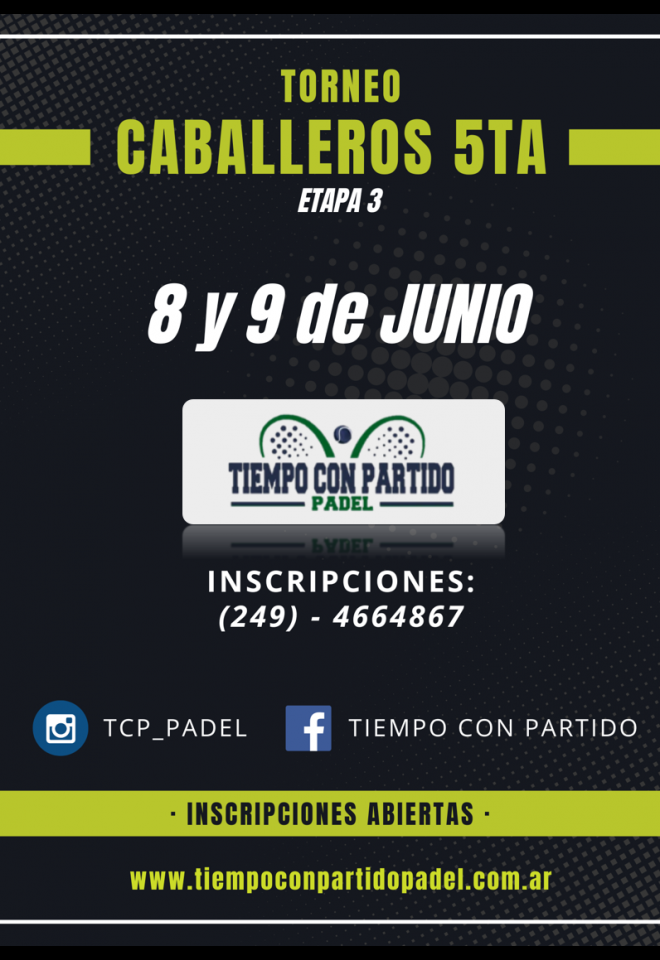»» Evento: Caballeros 5ta - Etapa 3 »» Localidad: Tandil »» Fechas: 08/06/2024 al 09/06/2024
