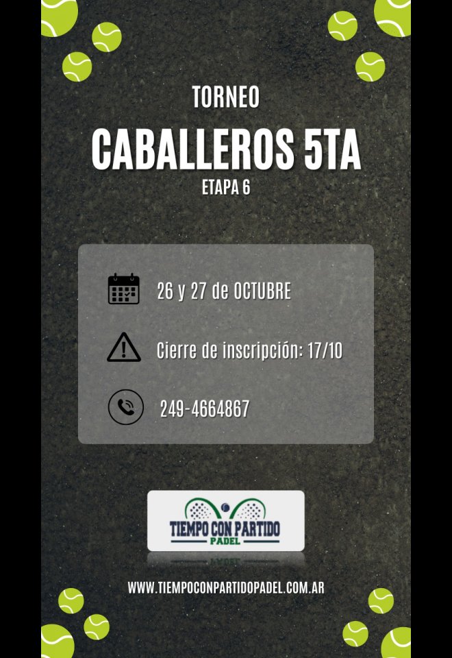 »» Evento: Caballeros 5ta - Etapa 6 »» Localidad: Tandil »» Fechas: 25/10/2024 al 27/10/2024