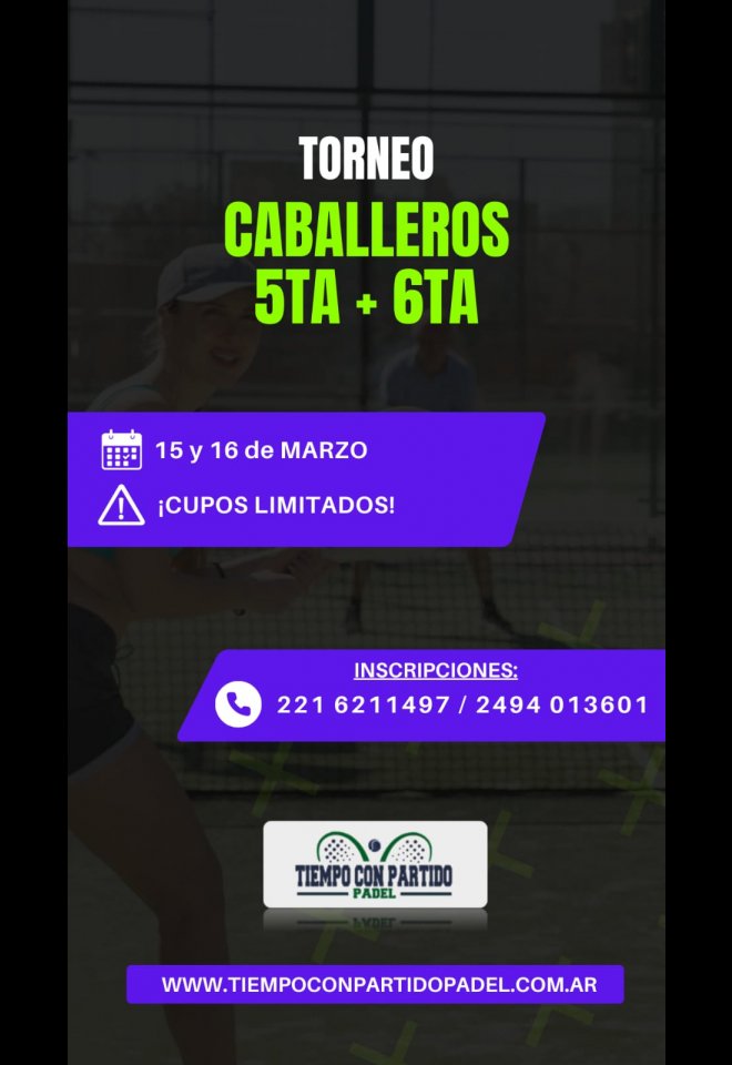 »» Evento: Torneo Caballeros 5ta+6ta »» Localidad: Tandil »» Fechas: 15/03/2025 al 16/03/2025